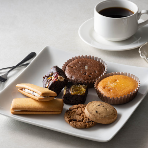 ホテルオークラの焼菓子の詰合せ。チョコレートを使用したブラウニー、しっとりした焼きあがりのマドレーヌなどさまざまな焼菓子を取り揃えているのにも、選ぶ、味わう楽しさを届けたいというおもてなしの心を感じて頂けるセットとなっています。