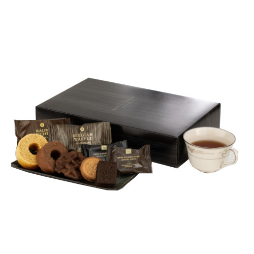 ■内容量:ベルギーワッフル(ショコラ)×2個バームクーヘン(ショコラ・ミルク)×各3,クリームサンドビスケット(ショコラ・キャラメル)×各6