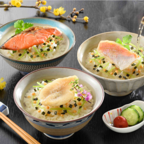 美味しく調味加工した魚の切身と、だしつゆが決め手の魚介系茶漬けの詰合せです。