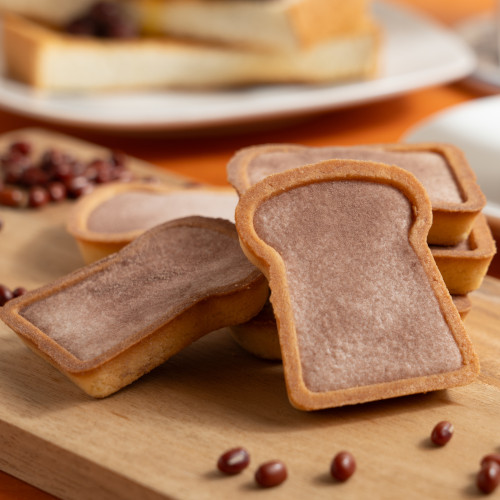 小倉トースト発祥の店正統継承店「喫茶まつば」監修。サクサクタルトに小豆味とホワイトチョコの2層のチョコクリームを乗せ、小豆パウダーを振りかけ焼き上げたトースト型のタルトです。
