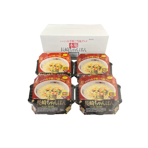 長崎限定の「唐あく」を使用した風味と旨味を与えるちゃんぽん麺と、キャベツ、エビ、かまぼこ、コーン、きくらげ、人参と濃厚なスープがマッチした、レンジでお手軽に調理して頂ける、本場長崎ちゃんぽんです。