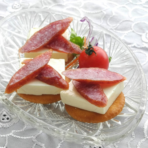 ■内容量:腸詰サラミ(プレーン)60g、茎わさび入りサラミ60g、一味唐辛子入りサラミ60g