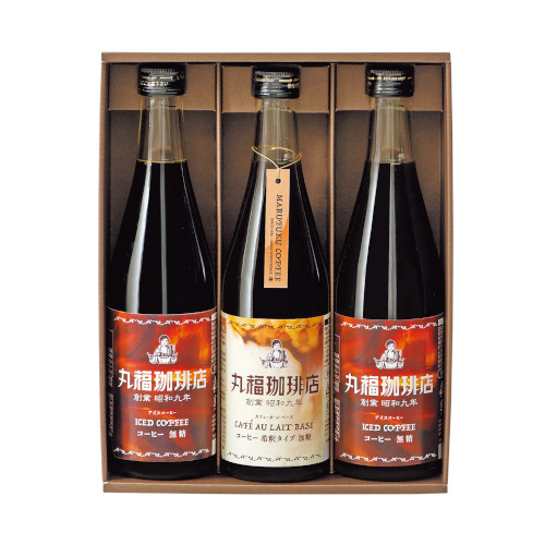 こだわりを守り続ける丸福珈琲店がお届けする、オリジナルブレンドのアイスコーヒーと、牛乳で割って楽しむ甘みあるカフェオレベースのセットです。